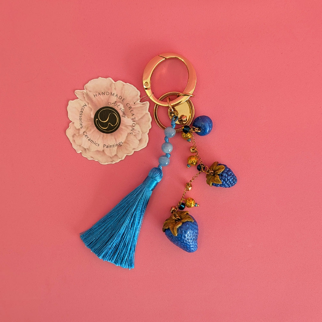 - Handmade berry charm keychain in red, blue and black