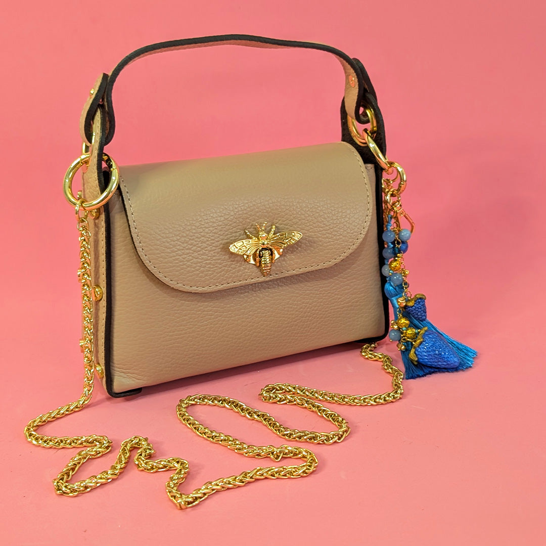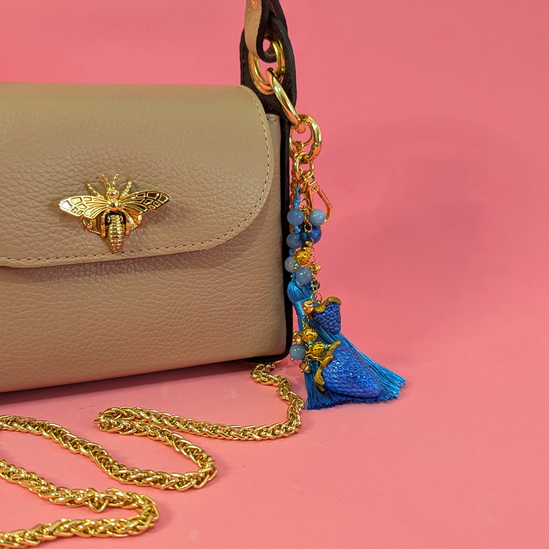 Each Berry Charm Keychain is made with attention to detail from start to finish. The fruit charms are made to feel fun and slightly whimsical, while still keeping a clean, polished look. The tassels and crystals add movement and shine, and the gold ring ties everything together with a premium finish. Every piece is handmade in Malta, so no two keychains are exactly the same – each one carries its own little character. Both versions come with matching tassels and crystals, creating a soft sparkle and a cohesive colour story. The gold hardware adds a touch of luxury without feeling too formal.