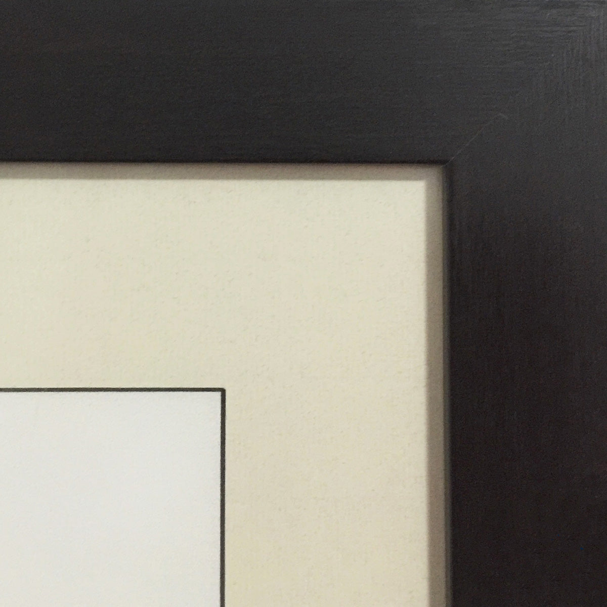 The non-reflective glass adds sophistication to the painting, ensuring that it can be viewed in any lighting without distractions. The dark frame itself is elegant and unobtrusive, allowing the painting to take center stage.